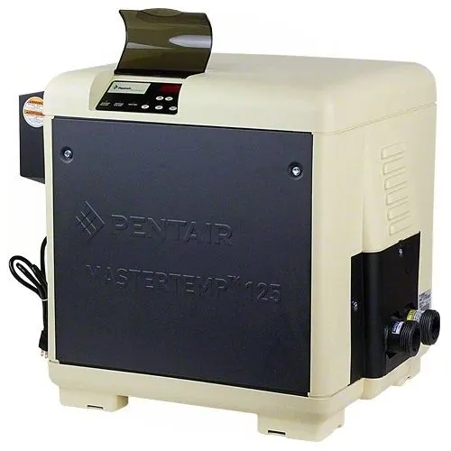 Sistema de calentamiento a base de gas propano con sistema millivolt de encendido analogo de perilla con capacidad de 125.000 btus para piscinas no mayores de 30,000 litros de agua con un aumento de temperatura de 1/2° centigrado por hora, conexiones de 1 1/2″/2″ tipo tuerca union, incluye tapa para instalacion en exterior